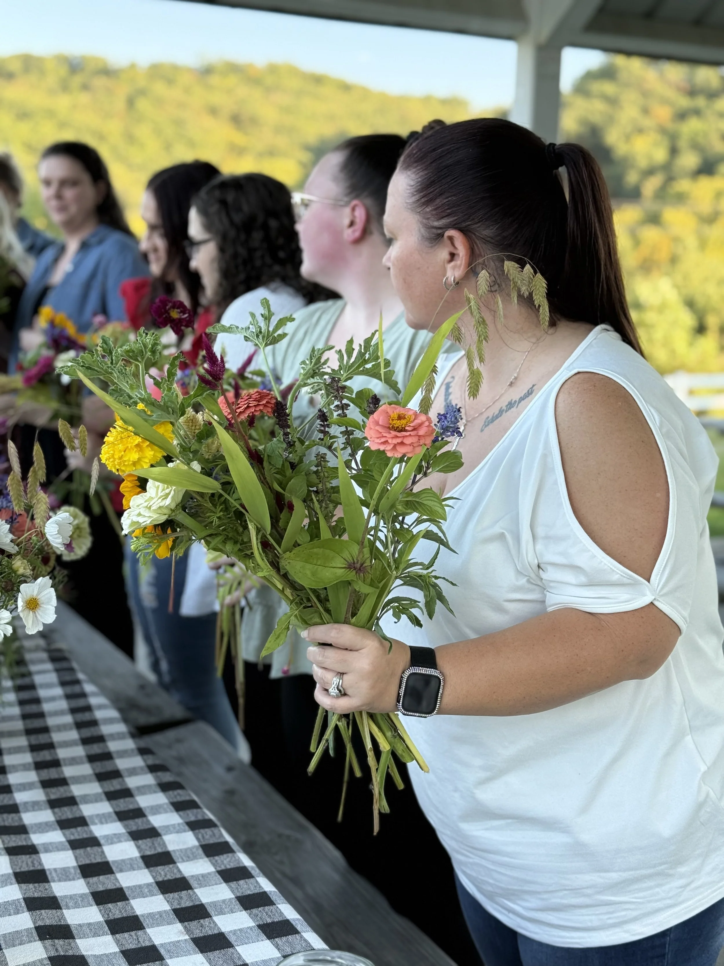 Our bouquet workshops are a chance to slow down, play with farm-fresh flowers, and learn the art of arranging. Perfect for friend groups, team events, or anyone who just loves flowers, it’s a creative experience where everyone leaves with something beautiful in hand.